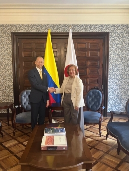 Este 22 de diciembre, el señor Embajador SHIMIZU Toru presentó las copias de estilo de las cartas credenciales a la señora Ministra de Relaciones Exteriores Rosa Yolanda Villavicencio, dando así inicio a sus funciones como Embajador Extraordinario y Plenipotenciario del Japón en Colombia. Durante la reunión, hizo referencia a los resultados de la visita del señor Presidente Gustavo Petro al Japón del pasado mes de septiembre, a la cual la Canciller lo acompañó, y se confirmó la intención de promover cooperaciones concretas en diversos ámbitos, orientadas a fortalecer las futuras relaciones bilaterales entre Japón y Colombia.