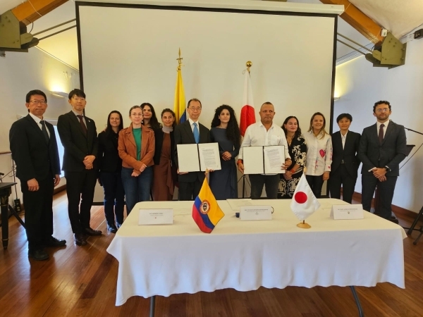 3月6日、在コロンビア日本国大使館は、ボリバル県サン・ハシント・デル・カウカ市に新たに児童図書館を建設するプロジェクト、草の根・人間の安全保障無償資金協力の署名式を実施しました(日本側署名者は清水大使)。このプロジェクトを通じて、地域の発展や社会環境の向上に寄与するとともに、日本とコロンビアの友好関係が一層強化されることを心から願っております。